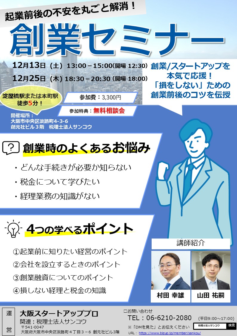 会社設立時の注意点や必要な手続き、複雑な税金関係のポイント解説、さらには適切な資金調達方法まで、具体的な事例を交えてわかりやすく解説する盛りだくさんの内容となっております。